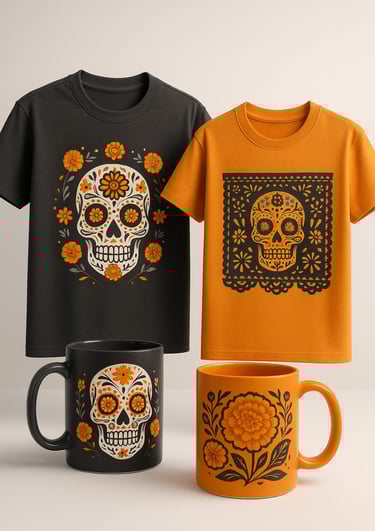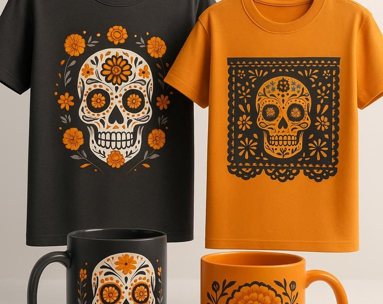 Playeras y artículos inspirados en el color, la memoria y la esencia del Día de Muertos.